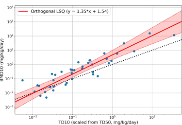 The TD50 is perhaps the traditional measure of carcinogenic potency. Despite its wide use the method is starting to show its age and is unable to account for a number of processes which may lead to non-linear responses. BMD models have been developed to address the shortcomings of the TD50 method but their adoption has been slowed by a lack of historical data. In this work the potency of approximately 50 compounds of interest was calculated using each method and compared. This shows that while there is significant individual variation the aggregate values align well. https://doi.org/10.1007/s00204-024-03951-8